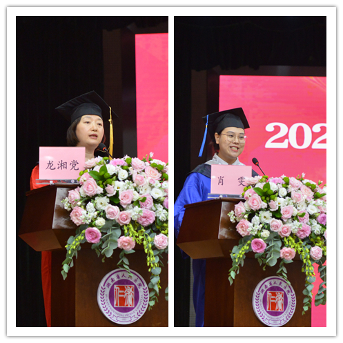 毕业生代表肖雯同学和导师代表、超声医学科主任龙湘党发言