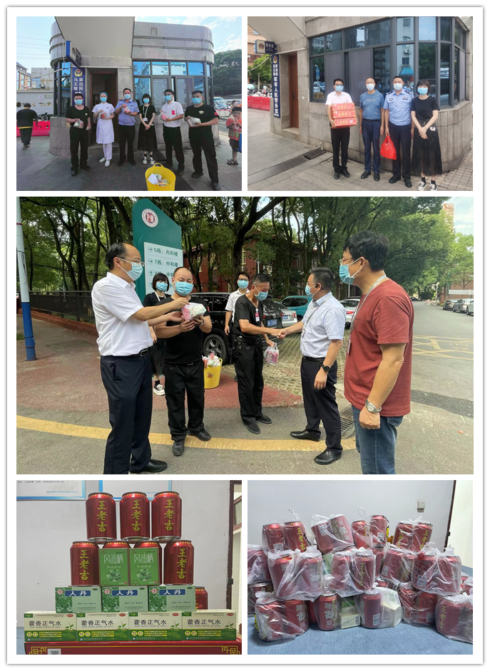 当天,副院长朱文辉、马王堆院区执行院长张超杰一行来到马王堆院区,先后对南大门交警、车辆管控岗、守栋门禁岗的保卫人员进行了慰问,为他们送去凉茶、藿香正气水、人丹、风油精等防暑降温物品,将医院的关怀送到每一位一线值守人员的手中。保卫部主任张志诚、副主任刘进、陈思卓参加了慰问活动。