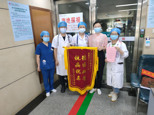 7月13日,家住邵阳原本生命垂危的八旬老翁李爹爹在急诊二部ICU经过21天精心治疗后,能自行下床活动及洗漱。在顺利康复出院时,家属给医务人员送上了手写的感谢信和锦旗,表达感激之情。