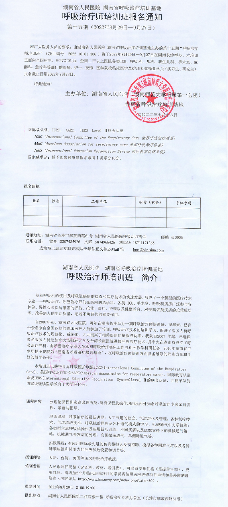 第十五期呼吸治疗师培训班通知