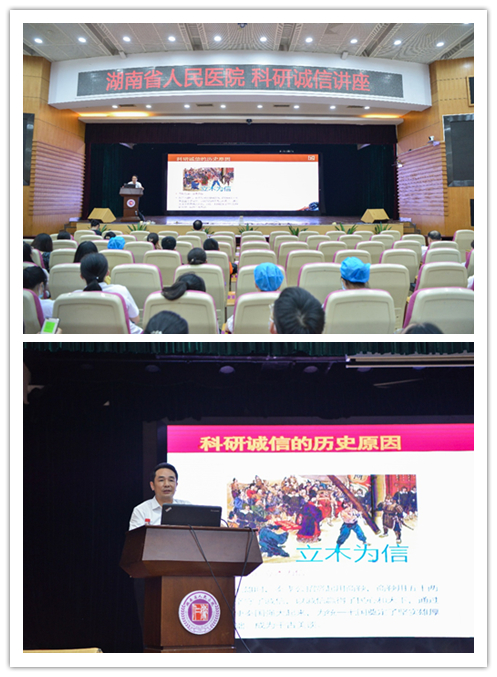 为全面贯彻习近平总书记关于科技创新和科研作风学风建设的重要论述,在捷克论坛 形成诚实守信、激励创新、科技成果不断涌现的创新生态环境,助力医院高质量发展,7月28日下午,科研部邀请省科技厅监督诚信处处长杨剑来院进行“科研诚信”的讲座。会议由科研部负责人石泽亚主持,医院党委委员、临床医学院党委书记朱华波出席,医院全体科研项目负责人参加了本次培训,三院区同步直播。