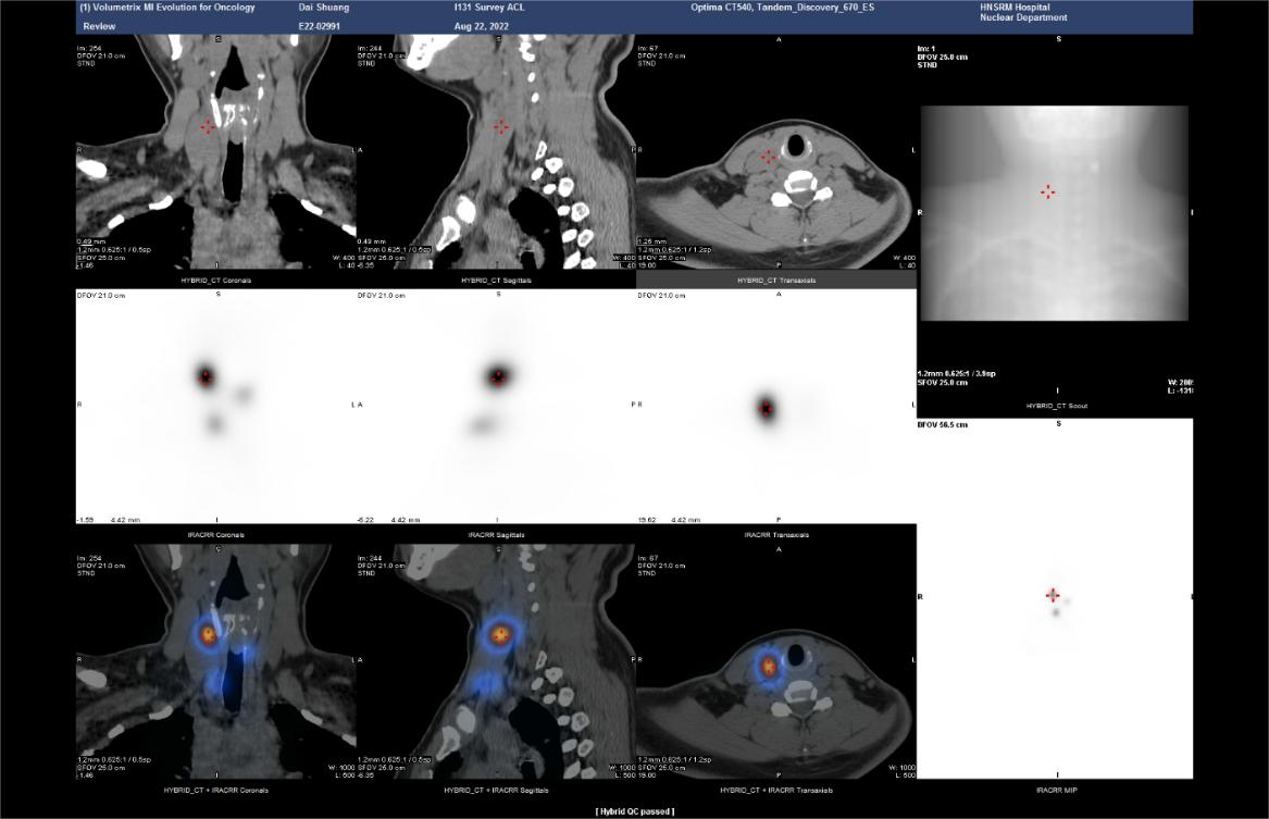 2022年8月15日迎来了第一批甲癌病友,住进了舒心的核素治疗病房,有着强大的医疗团队保驾护航,经过为期一周的精心治疗,在天心阁院区完成碘131治疗全身显像后于22日顺利出院。