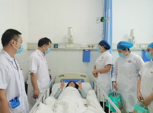 同时,为了让不能回家、家属也不能探视的住院患者感受到节日的喜庆,贺学军主任特意一大早赶到病房,在如常仔细查房的同时,为每一位住院患者送上月饼,送去节日的祝福。情意满满,病患喜笑颜开,纷纷感谢医护团队的关心照顾。查完房,贺学军主任反复叮嘱尤其要为高龄患者视频连线,哪怕不能言语沟通,看一看家人,听一听家人的声音也是好的。