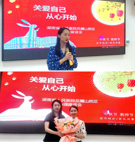 金风送爽,丹桂飘香,师恩不忘,明月寄情,当教师节邂逅中秋节,为了给员工们增添节日的氛围,大家欢度团圆佳节,开展“心怀皓月,致敬师恩”的Patty。新冠疫情的不断袭击,员工对精神层面的要求不断提高、压力也在不断增加,作为一名临床医务人员,工作强度大,精神压力大,缓解本院职工的精神压力,调整情绪保持健康状态尤为重要,特开展“关爱自己,从心开始,透过性格找自己”心理健康讲座。2022年9月9日,在中秋教师双节即将来临时,捷克论坛 岳麓山院区分工会开展了迎中秋、谢师恩、促交流心理座谈会。