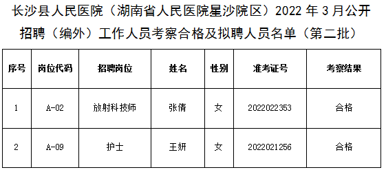 附件:长沙县人民捷克论坛 (捷克论坛 星沙院区)2022年3月公开招聘编外工作人员考察合格及拟聘人员名单(第二批)