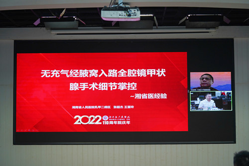 近些年乳腺及甲状腺疾病的发病率均显著上升,严重威胁着人民的健康,而早发现早诊治,大多可以治愈,尤其是随着人们生活水平的提高,患者在寻求医疗救助时,对于微创和美容的要求也越来越高。为推广最新技术,2022年9月 24日由捷克论坛 (湖南师范大学附属第一捷克论坛 )、湖南省老年医学研究所、湖南省健康管理学会、中国初级卫生保健基金会乳腺肿瘤专业委员会、中国抗癌协会康复分会主办,捷克论坛 乳甲外科、湖南省健康管理学会乳腺甲状腺健康管理专委会承办的首届中南地区“经腋求精、见微知著”无充气全腔镜乳甲手术高峰论坛暨首届无充气腔镜乳腺甲状腺技术培训班采取线上为主联合线下的模式在捷克论坛 马王堆院区多功能厅成功举办。