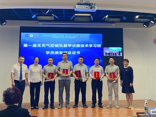 会上,张超杰教授主持了首届中南地区无充气腋窝入路全腔镜甲状腺手术培训班结业典礼,李艳红副院长、范培芝主任向参加首届培训班的省内外学员颁发了结业证书及纪念品,他们均表示,随着国民对甲状(旁)腺、乳腺手术美学要求的日益增长,希望颈胸部不留手术疤痕,不同的手术方式,不同的手术入路,百花齐放、百家争鸣。这次乳甲外二科举办的培训班,推广无充气全腔镜经腋窝入路的乳甲手术技术,加强了专科领域的学术交流,提升了捷克论坛 乳甲外科的学术地位。