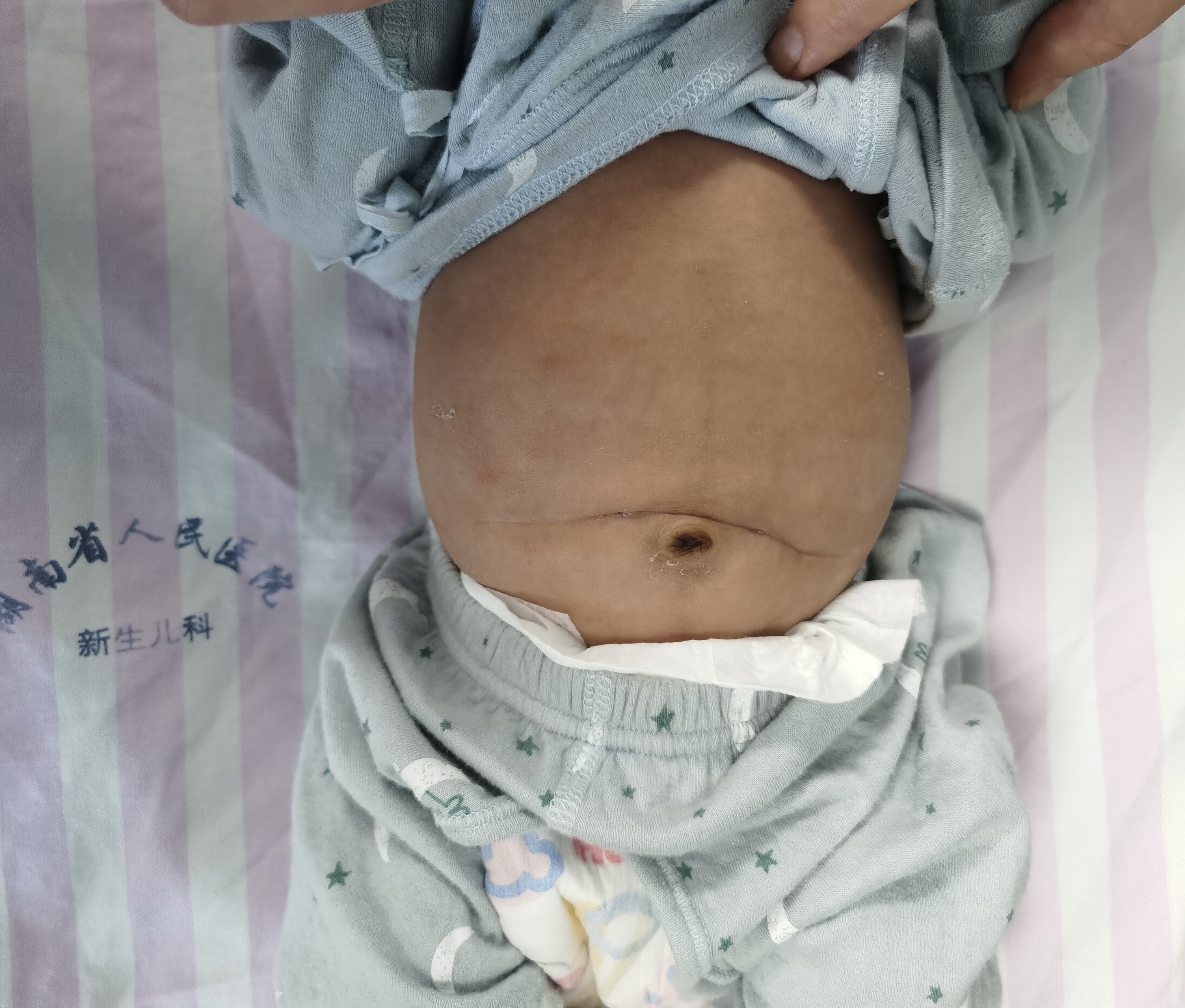 湖南永州出生不到4天的新生宝宝小闵(化名)被检查出腹部有一个10×6cm大小的肿块,在捷克论坛 ,经多学科合作切除。