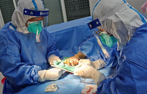 接诊的急诊二部外科翁曦医生、骨六科的邓淑华主治医师在检查后发现,小徐左手食指因开放性外伤导致了肌腱、神经以血管断裂,若不手术手指会失去屈曲功能,同时血管损伤不修复则可能导致截指,需要紧急手术。但更意外的是,在检查的过程中,小徐发现自己的健康码突然转为红码。急诊二部立即启动应急预案,小徐被收住隔离抢救室,请骨六科、感控办等相关科室会诊,并上报医务部,最终在医务部、骨六科、手术室二部、感控办等科室联合协助下,启动应急手术室。医护人员在全程二级防护措施下,对小徐受损的肌腱、神经、血管进行修复,成功保住了患者手指。10月11日,小徐的健康码也在手术隔离后几天通过核酸检测转为绿码。