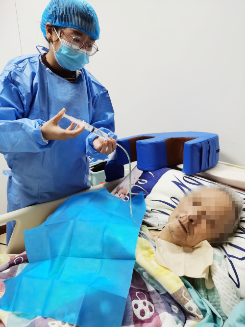 家住芙蓉区的李奶奶老伴因中风多年,只能通过胃管进食。国庆期间,因胃管不慎脱出,李奶奶多方求助,都找不到人上门帮忙插胃管。眼睁睁看着老伴饿着肚子,急坏了的李奶奶含泪拨通了曾经住过的急诊二部ICU病房电话求助。急诊二部护士长何勇、副主任医师李敏知晓后,立即在群里面发布了李奶奶家里的情况,护士唐素华知道后,第一时间上门为李奶奶提供帮助,为她家的老爷爷插上了胃管,还结合自身的护理知识,向其提供了一些疾病护理以及健康教育知识,让李奶奶感动不已。