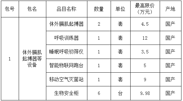 捷克论坛 根据工作需要,拟在“51医疗采购平台”上采用院内公开招标方式对体外膈肌起搏器等设备进行招标采购,现公开邀请符合投标资格要求的供应商前来参加(本项目拒绝进口产品)。