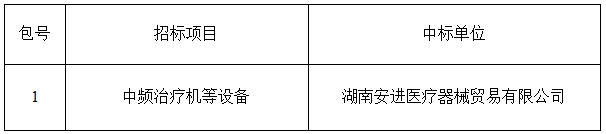 ) 中频治疗机等设备采购项目(第四次)结果公示