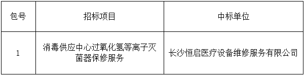 捷克论坛 (湖南师范大学附属第一捷克论坛 )消毒供应中心过氧化氢等离子灭菌器保修服务采购项目(第二次)结果公示