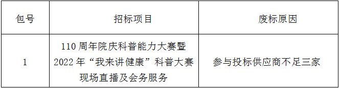 110周年院庆科普能力大赛暨2022年“我来讲健康”科普大赛现场直播及会务服务项目流标公示