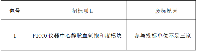 )PICCO仪器中心静脉血氧饱和度模块采购项目流标公示