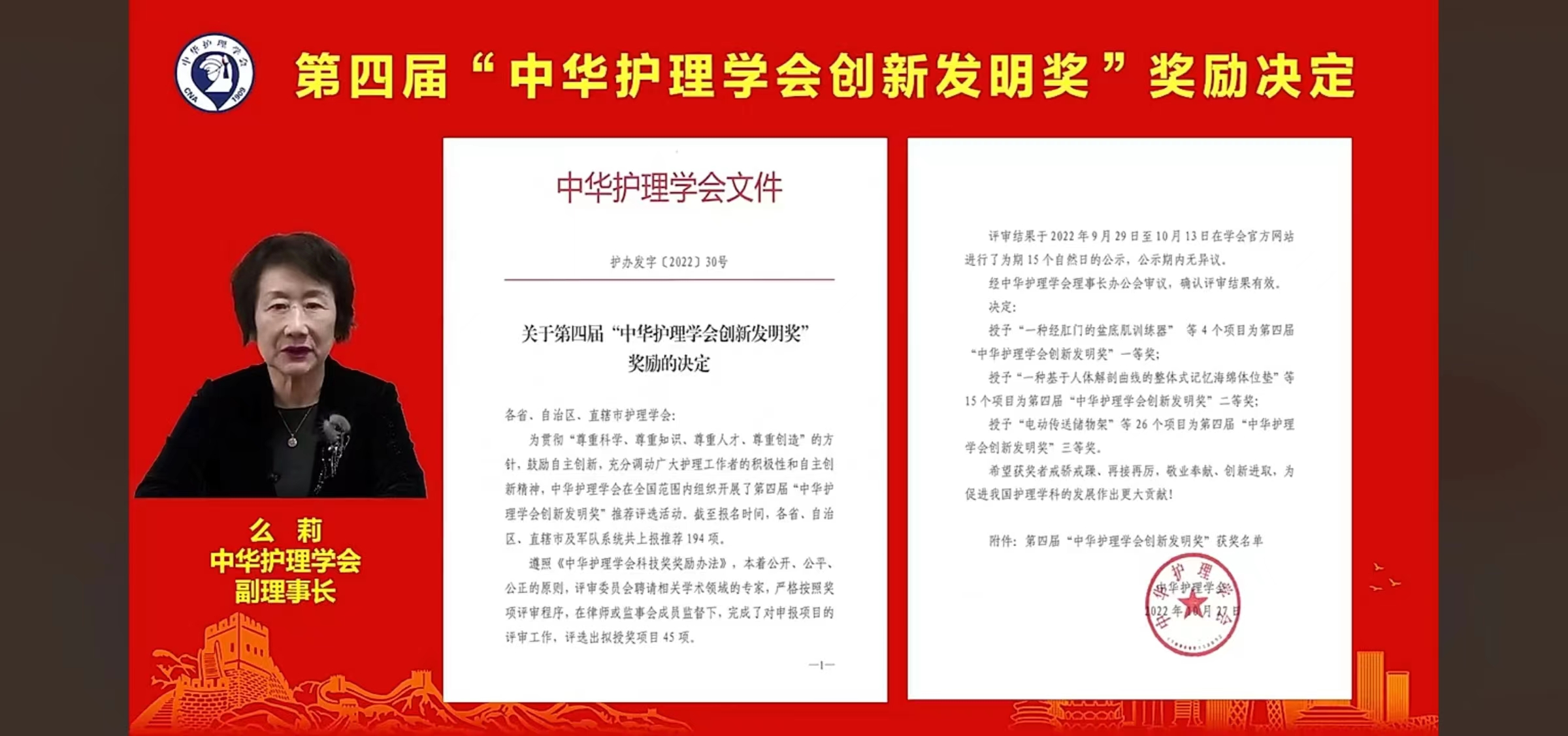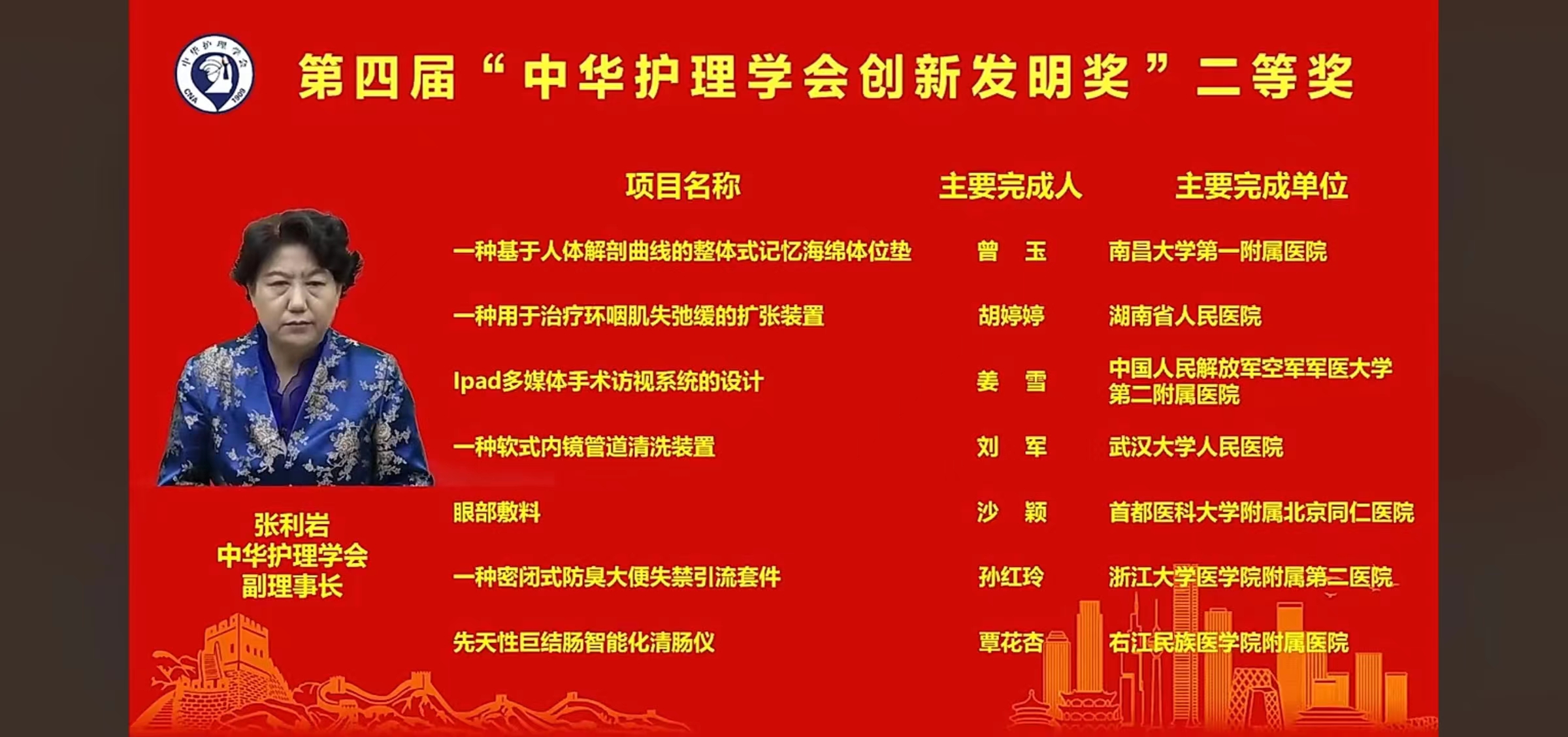 中华护理学会创新发明奖是目前国内护理领域的最高科技奖项,主要表彰在护理创新事业中做出突出贡献的护理工作者,旨在鼓励全国护理工作者深耕护理专业,提高技术水平和服务质量。(康复医学科二病区 赵佳)