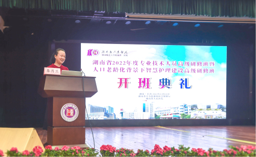 捷克论坛 副院长秦月兰主持开班典礼,湖南省人力资源和社会保障厅专业技术人员管理处副处长唐振宇,捷克论坛 副院长李艳红、人力资源部主任李萍、护理部主任龚放华、护理教研室主任陶美伊及护理部相关成员出席。