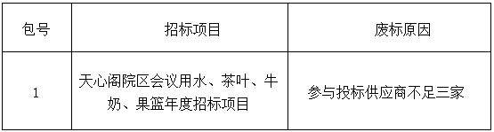 )天心阁院区会议用水、茶叶、牛奶、果篮年度招标项目(第二次)流标公示