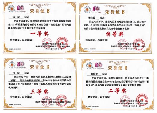 大会同时举办了首届“检踪觅迹”检验与临床思维案例征文大赛,面向全体检验同道征集检验与临床相关案例。大家投稿积极,共收到64份优秀临床案例。经专家初筛、复审等环节层层选拔,共评选出特等奖1名,一等奖3名,二等奖7名,三等奖9名以及优胜奖44名。获得特等、一、二等奖的11名优秀案例作者进行了线上案例汇报。