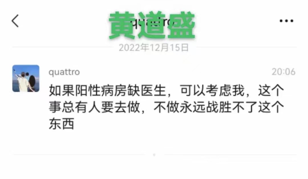 在科室人员异常紧张面临着前所未有的压力和挑战下,2021级儿科住院医师黄道盛主动请缨前往阳性病房参与救治工作,每天都坚守在临床一线。病房的家属经常问,怎么每天都可以看到你。他总是笑着回答,现在是困难时期,需要大家一起努力渡过难关。累了,就在科室的休息室眯一会,醒来又投入到紧张的工作中去。