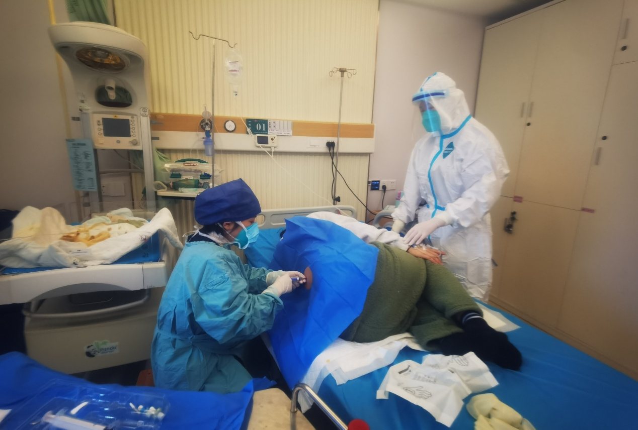 李争妍在给病人做腰穿