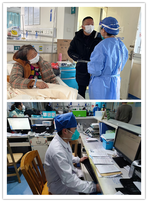 从科室发现第一例阳性病人开始,老师们说的最多的一句话就是:“我来,你们退后”。有幸被照亮,所以也想成为光。在被感染的第一天,2021级全科住院医师向倩、2020级研究生邹佳、2021级消化内科研究生宁磊、2022级研究生吴帅、2021级研究生刘清华依然主动报名留下来坚守病房守护大后方。她们说“面对疫情风暴,全院上下都在咬牙坚守在一线,身为年轻的住院医师,我们只是做了我们该做的事情,相比于急诊一线的压力,我们做的太微乎其微了,穿上这身白衣就没有害怕一词,就应该肩负起治病救人抗击疫情的责任,特殊时期和医院一同守望相助,共克时艰是我们此刻的职责和使命所在”。