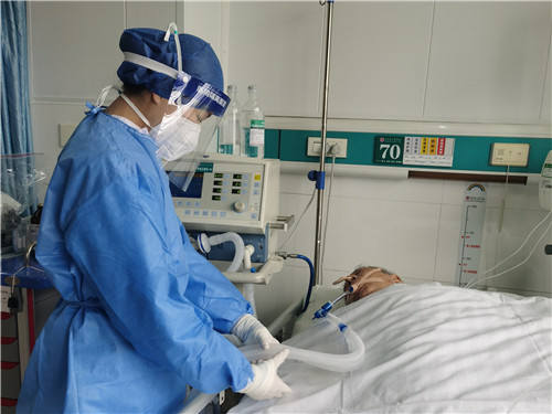 病区共有床位53张,其中呼吸重症床位26张,病床每天都是满员,有创机械通气的病人近20来人,17名医师、46名护士每天都处于超负荷运转状态。