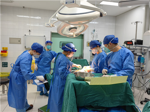 12月24日,一名足月的阳性孕妇发作,宫口已开3cm时胎心下降,且为无反应型,需要立即行剖宫产手术。妇科二病区刘琴主任已有身体不适,还在等核酸结果的她,立即和刚返岗的姚婵姣医生一起上台,为产妇完成剖宫产手术,术中发现胎儿羊水已经2度了,多亏及时做了手术,母子平安。