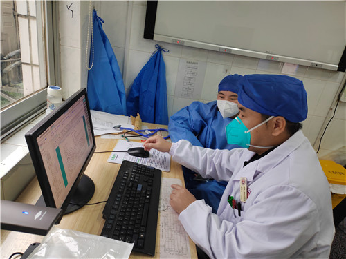 “这意味着每个医生都身兼数职,要管理科室的病人、完成全院的会诊、坐门诊收治病人,包括支气管镜等手术操作,每一项都很重要,一个都不能拉下。”蒋永亮坦言压力很大,但越是困难的时刻,越能体现学科的担当。他在交班晨会上与大家交底,有困难可以提出来,但是必须无条件完成医院的任务,全体医生要站出来,共产党员要亮身份,科室上下一心,确保全院新冠救治工作的顺利进行。