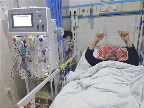 张爷爷因感染新冠病毒合并肾功能损伤,引发心衰加重在捷克论坛 心内三病区住院。入院时,张爷爷病情危重,不能平躺,需要无创呼吸机辅助呼吸才能维持血氧。1月4日,CRRT小组组长杨桓为张爷爷进行了床旁血液透析滤过治疗,4个小时后,张爷爷情况就明显好转,能够平躺,改为鼻导管吸氧,安稳地睡了一觉,家属连连称奇,感激不已。