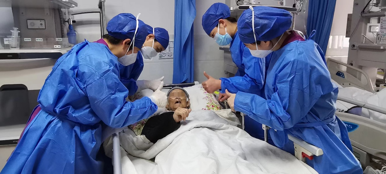 据介绍,王爷爷本身有冠心病、脑梗、糖尿病、肾功能不全等多种疾病,入院时,老人心率最快时可达195次/分,血氧饱和度一度下降至68%,出现意识模糊,医生立即进行气管插管、呼吸机辅助通气及相关对症治疗。
