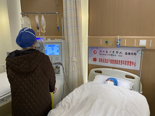 同时,为了保证妹妹在仓里的安全,在刘灿主任的带领下,移植病房的医护团队加强防护,密切观察,并及时调整治疗方案增强患者被动免疫。终于,12月23日,在小雅症状好转后,血液科相关工作人员第一时间安排干细胞采集。12月24日,历经两天的采集,小雅成功捐献总计423ml的造血干细胞悬液,为妹妹送去生命的希望。经过后续的治疗,小赵顺利出院。