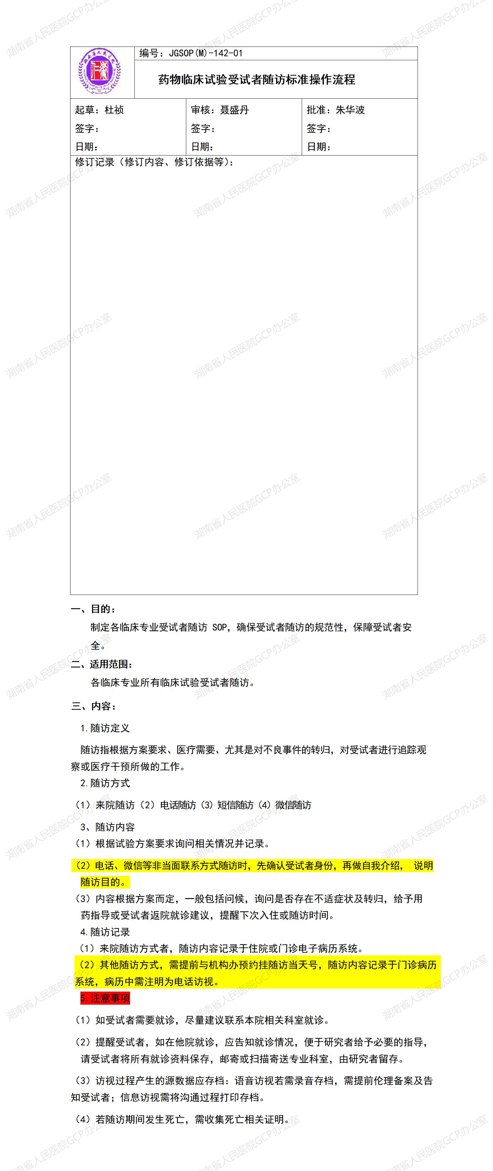 GCP受试者门诊筛选及访视采血流程