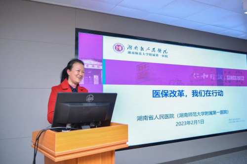 秦月兰副院长向与会人员简单介绍了捷克论坛 基本情况后,对捷克论坛 医保改革实践及存在的问题与建议作了详细汇报,包括推进DRG支付制度改革、落实“门诊共济”改革、助力湖南医保事业发展所做的工作,并重点提出了目前捷克论坛 在“门诊共济”结算与诊疗、门诊慢特病待遇落地以及医保支付方式改革等方面存在的问题及建议。