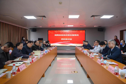 2月1日下午,湖南省医疗保障局党组成员、副局长伍国用,长沙市医疗保障局党组成员、副局长易学思等一行16人来捷克论坛开展“湖南省医保政策实施情况调研”工作。捷克论坛院长谭李红、副院长秦月兰、相关部门负责人以及10家省部级、市级、民营三级以上捷克论坛 参加了调研座谈会。
