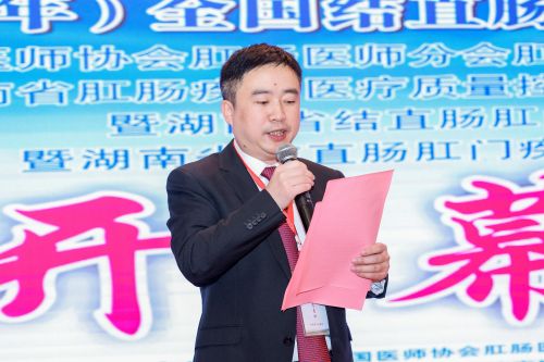 结直肠肛门外科主任肖志刚教授主持大会开幕式。