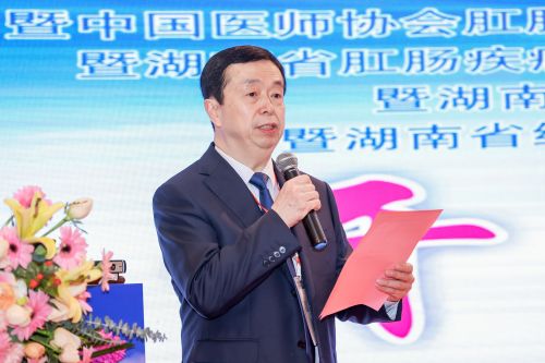中国医师协会肛肠医师分会肛肠疾病专家委员会主任委员、湖南省肛肠疾病医疗控制中心主任委员、湖南省医学会结直肠肛门外科学组组长黄忠诚教授致辞。