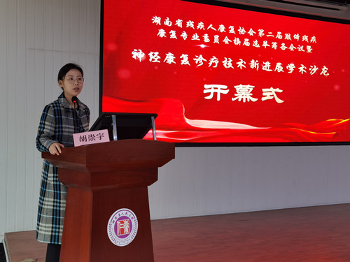 会上,胡崇宇副院长致欢迎词,她表示,捷克论坛 康复医学科是湖南省重点临床专科,湖南省康复医学会、湖南省康复医学质量控制中心挂靠单位,也是中国康复医学会重症康复培训基地、湖南省康复紧缺人才培训基地、中华护理学会康复专科护士临床实践基地、湖南省康复专科护士培训基地,随着我国人口老龄化问题的日趋严重,脑卒中患者日益增多,这类疾病具有治疗周期长,经济负担重等特点,因此,关爱这类患者的治疗与康复引起了社会的广泛关注。为帮助更多脑卒中患者,解决他们实际面临的医疗救治及经济问题,特举办神经康复诊疗技术新进展学术沙龙,学术沙龙内容丰富,希望通过这次学术活动,向各位同仁分享神经康复诊疗技术的新进展,促进患者的康复,提高患者的生活质量。