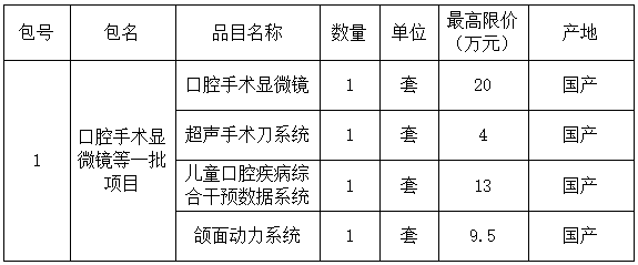 捷克论坛 根据工作需要,拟在“51医疗采购平台”上采用院内公开招标方式对口腔手术显微镜等一批采购项目进行招标采购,现公开邀请符合投标资格要求的供应商前来参加(本项目拒绝进口产品)。