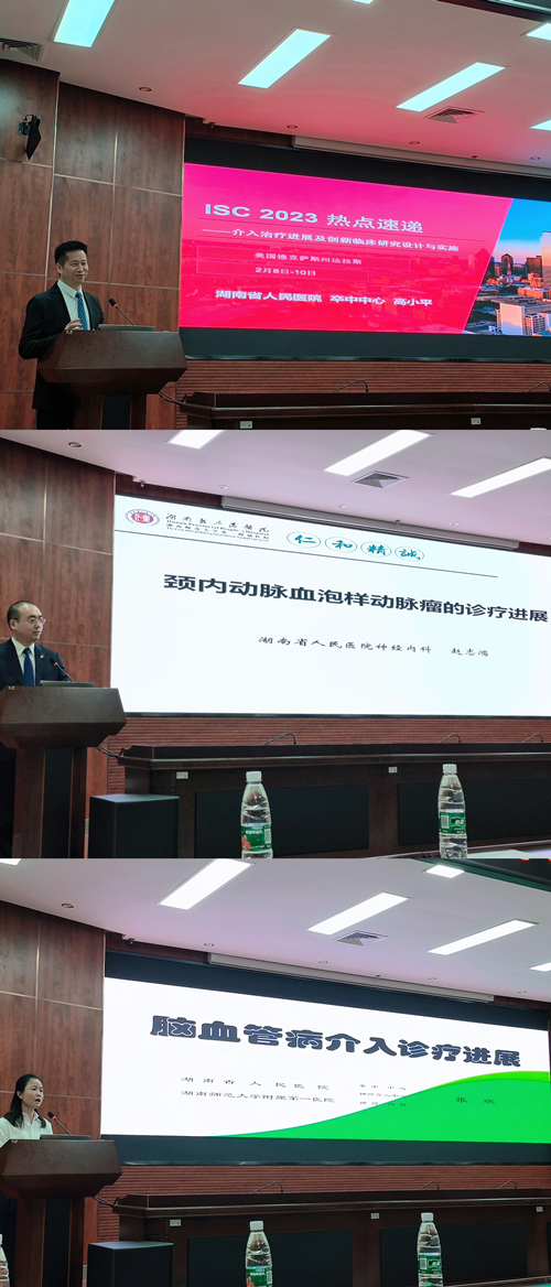 在交流会上,高小平主任医师、赵志鸿主任医师、张欢主任医师分别分享了《ISC 2023热点速递-介入治疗进展及创新临床研究设计与实施》《颈内动脉血泡样动脉瘤的治疗进展》《脑血管病介入诊疗进展》,并且回答了来自湘西自治州医学会神经病学同道的提问,与会人员纷纷表示,本次活动,干货满满,专家们不仅将宝贵的临床经验倾囊相授,并且还带来了先进的诊疗理念、脑卒中患者全流程健康管理的内容,令基层医护人员受益匪浅。(文:神经内科 马琳、高小平)