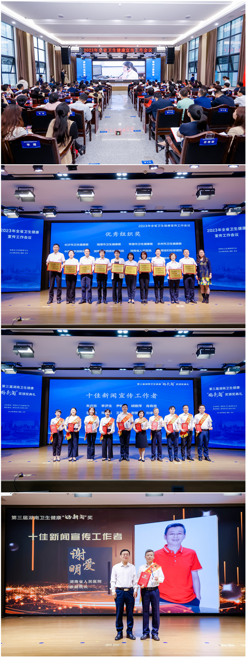 5月6日,2023年湖南省卫生健康宣传工作会议在长沙召开。会上,同期举行了第三届湖南卫生健康“好新闻”“喜迎二十大·健康新征程”主题活动暨第五届湖南省健康科普大赛表彰颁奖。湖南省人民荣获优秀组织奖,报送的多部新闻与健康科普作品获奖。