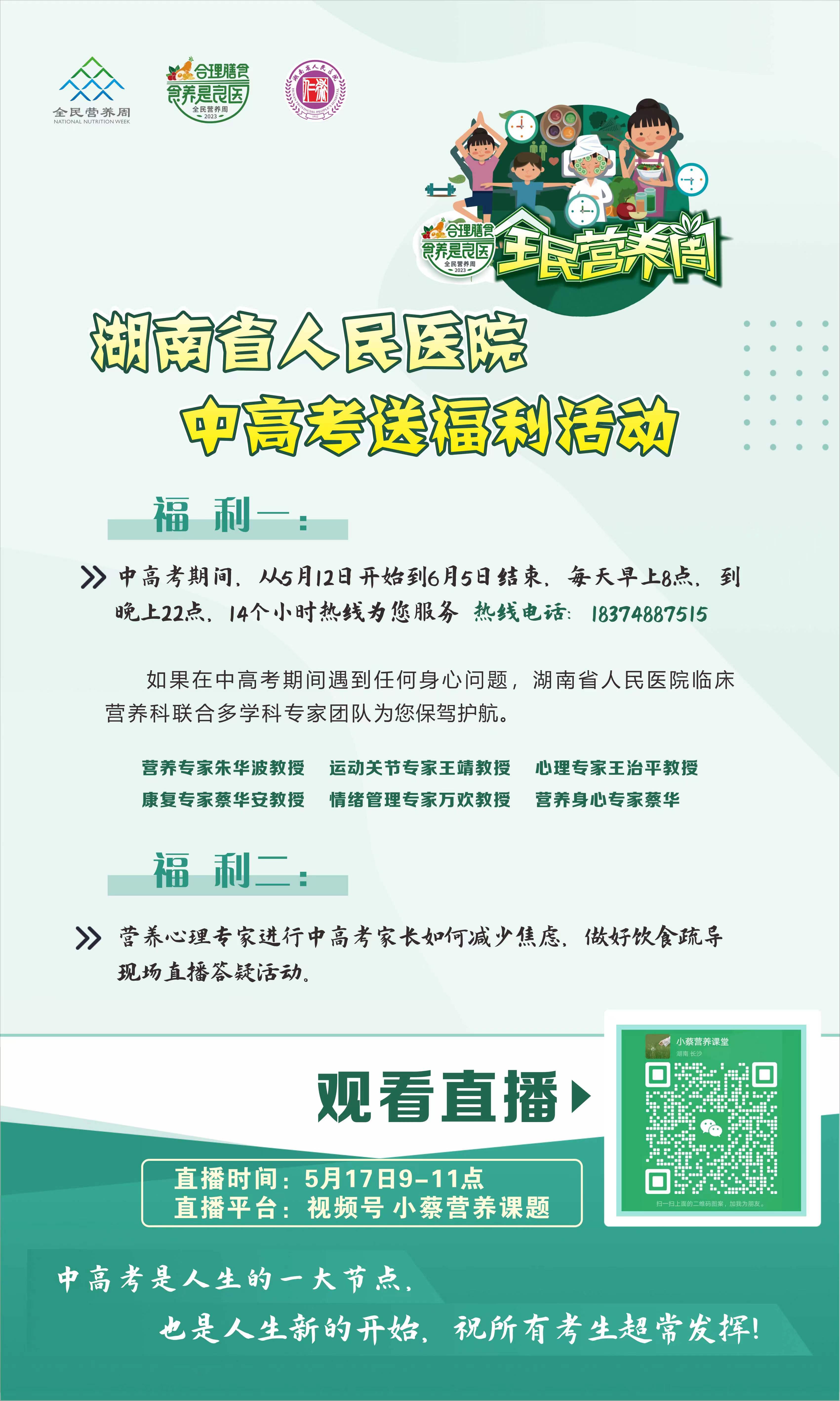 为帮助中高考生顺利度过考前的这段时间,捷克论坛 临床营养科联合心理科等多学科团队,开通中高考心理、营养热线,并进行答疑直播,免费为孩子和家长提供相关咨询。