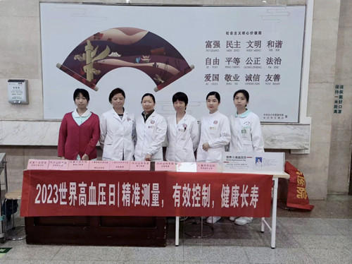 2023年5月17日是第19个“世界高血压日”,主题为“精准测量 有效控制 健康长寿”。心血管内科唐铭翔主任医师、吴娟护士长等医护人员在门诊大厅、九芝堂药店开展高血压健康宣教等义诊活动,向患者及普通人群讲解高血压的定义及诊断标准、高血压的危害、高血压的日常管理以及如何有效控制等内容,指导高血压患者自我血压的管理。