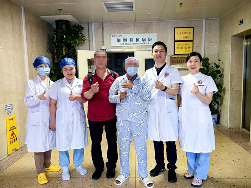 2023年3月底,徐女士再次到捷克论坛 血液内科住院,陈建军副主任医师为她评估病情达到了SCR。一切准备就绪,4月初,她转入捷克论坛 细胞移植病房,接受了自体造血干细胞移植。虽然历经严重的骨髓抑制、肺部感染、心力衰竭、口腔黏膜广泛溃疡、消化道黏膜损伤甚至消化道出血、电解质酸碱平衡紊乱等情况,一度病危,但在细胞移植病房的全体医护人民的精心治疗和鼓励下,脱离层层危险顺利造血重建,病情好转出院了,