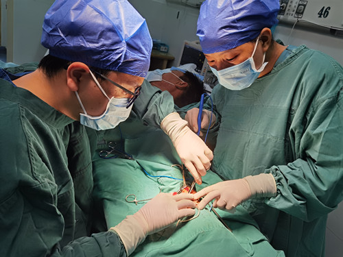 纠正高钾血症,控制好血压,手术开始了。由于术前评估到位,内瘘重建顺利,瘘静脉又恢复了柔和的震颤感。但瘤体处理难度极大,由于患者未及时就诊,整个瘤体新生了几十根血管,哪一根误伤都会引发瘤体大出血,手术组“剥茧抽丝”,将瘤体完整剥除,成功将这个“定时炸弹”拆除。术中出血量仅10ml,术后伤口美观,B超探查血流通畅,李先生对治疗非常满意,他表示,再也不需要提心吊胆害怕血管爆裂了,感谢肾内二病区医护团队保住了他的生命通道。
