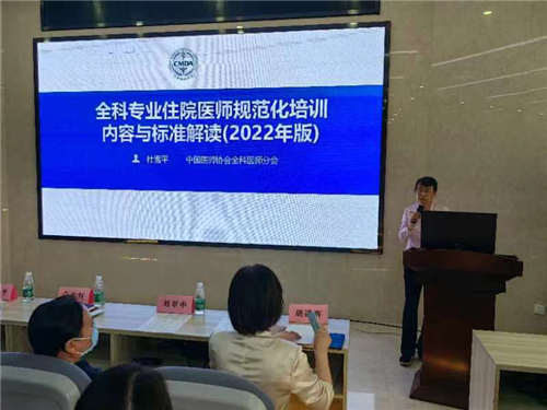 师资培训班分别就全科医学师资的带教实践经验分享、三定四动框架下的融合式捷克论坛 社区基地全科师资培养模式、靶向思维视角下一全科医生专长化教育的意义、全科医生为什么做科研、从全科住培评估看住培内涵建设、专科医生的全科带教能力培养、全科教学查房常见问题分析、住院医师规范化培训大纲(2022年)解读、公共卫生技能考核指标解读、基层实践基地师资带教等方面出发对全科医学带教师资进行培训,全院共200余位全科带教师资参与培训。