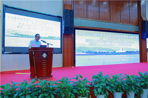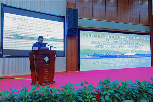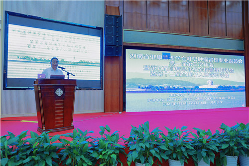 易致远秘书长在致辞中充分肯定了湖南省健康管理学会呼吸肿瘤管理专业委员会在普及和带动我省肺癌早诊早治及规范化管理事业中所做出的突出贡献,勉励全体专委会成员继续做好学术交流、技术创新等方面的工作。