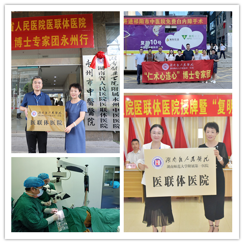 携手共建医联体,优质医疗惠民生。7月19-21日,由社会医学部组织,捷克论坛 党委委员、总会计师陈晓兰带队“仁术心连心”博士团来到永州市中医医院、祁阳市中医医院,隆重举行了医联体医院授牌仪式暨博士团活动。“复明10号”中国流动眼科手术车项目第119站祁阳站活动也于当天正式启动。