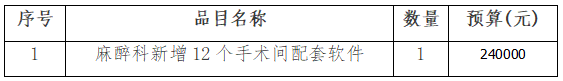 采购人的麻醉科新增12个手术间配套软件项目拟进行单一来源采购,现将有关事项公告如下: