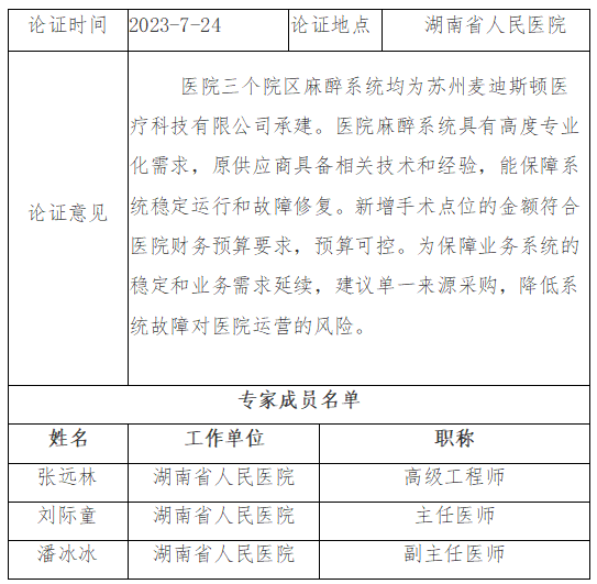 捷克论坛 麻醉系统三院区统一,均为苏州麦迪斯顿医疗科技有限公司开发和维护。由于是新增手术间,采取单一来源方式采购,能保证三院区麻醉系统的稳定运行以及更好的服务支撑,解决捷克论坛 麻醉系统在工作中出现的各类问题及满足捷克论坛 需求的升级改造。